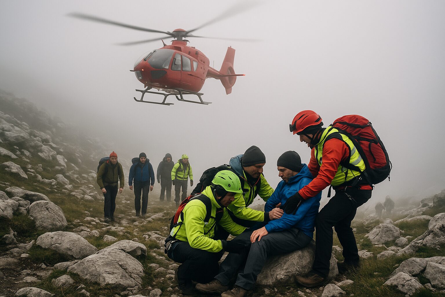 Nel frattempo, gli altri cinque componenti del gruppo, che si trovavano nei pressi della cima del monte Pollino, non riuscendo a proseguire a causa della fitta nebbia che riduceva la visibilità hanno atteso l’arrivo delle squadre di terra del Corpo Nazionale Soccorso Alpino e Speleologico che a piedi hanno raggiunto gli escursionisti lungo il sentiero. Il gruppo è stato poi accompagnato in sicurezza fino ai mezzi di servizio e successivamente condotti a Colle Impiso, dove erano presenti i soccorsi.